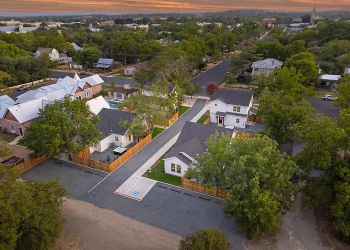 Die 8-Zimmer-Villa Southern Vine Sip And Stay Combo Fredericksburg liegt in einer Entfernung von nur 8 Gehminuten von der Hauptstraße und lockt mit einem Jacuzzi und einem Whirlpool. Die Villa in Fredericksburg befindet sich in einem historischen Viertel und bietet Parkplätze und WLAN.
